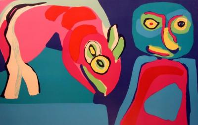 Appel was born in Amsterdam in 1921 and studied at the Royal Academy of Fine Arts in Amsterdam from 1940-1943. He had his first one-man exhibition in 1949 when he showed with the “CoBrA” group (initials of the members’ home cities: Copenhagen, Brussels, Amsterdam) at the Stedelijk Museum in Amsterdam. Since then he has had one-man shows, including three retrospectives in New York, Amsterdam, Boston, London, Milan, Paris, San Fransisco and Tokyo. He has taken part in over 150 group shows throughout the world, including the Sao Paulo Biennale, the Venice Biennale, Kassel’s Documenta III, the Museum of Modern Art and Guggenheim Museum in New York.